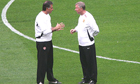 Sir Alex Ferguson discusses tactics with Carlos Queiroz at the Luzhniki Stadium. Photograph: Alex Livesey/Getty Images Photograph: Alex Livesey/Getty