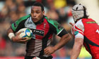 Jordan Turner-Hall of Harlequins goes past Jonathan Davies of Scarlets in the Heineken Cup. Photograph: Warren Little/Getty Images Photograph: Warren Little/Getty Images
