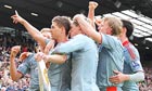 Liverpool's Steven Gerrard celebrates with his team-mates after scoring their second goal at Old Trafford. Photograph: Peter Byrne/PA Photograph: Peter Byrne/PA