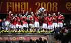 Manchester United celebrate after winning the Champions League final in Moscow last year. Photograph: Tom Jenkins/Tom Jenkins Photograph: Tom Jenkins