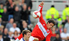 Instead, the hosts' lofted passes from deep merely saw King and Aliadière, their backs to goal, outmuscled and out-headed by United's centre-halves. One waited for Boro to up the pace and flood forward, but they appeared resigned to relegation and did not gamble in any way here. Robert Huth and David Wheater, happier to sit deep than squeeze the space, were unable to push their midfield closer to their increasingly isolated strikers. Downing was not progressive in possession, while O'Neil worked hard but with no support, leaving him ineffective on the right. Only Tuncay showed the desire to get forward from midfield, but he was not enough.