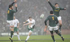 If only Ireland could steady the scrum they could yet hang on ... Instead, they yielded penalties and nearly conceded a try in the corner, only the knee of Tommy Bowe steering the ball over the touchline. The ball eluded South Africa then and they missed the points from the penalties, Steyn lacking the power to split the soupy Dublin air. What flies 70 metres in Pretoria would not go 40 on the eastern seaboard of Ireland.