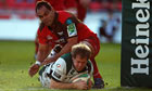 David Paice, the London Irish forward, dives over to score during his side's 31-22 Heineken Cup defeat by Scarlets in Llanelli. Photograph: Stu Forster/Getty Images Photograph: Stu Forster/Getty Images