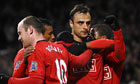 Manchester United players were as relieved as their fans when Dimitar Berbatov broke the deadlock in the second half. Photograph: Jason Cairnduff/Action Images Photograph: Jason Cairnduff/Action Images