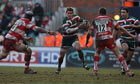 In the centre, Flood took his place in a leaky defence that allowed Jonny May in particular to spring into action. Gloucester, as the game opened up loosely, began to look more imaginative than Leicester, which admittedly is not always so very hard to do.