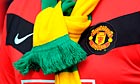 A Manchester United supporter wears a green and gold scarf in protest against the Glazer family's owenership of the club. Photograph: Paul Ellis/AFP/Getty Images Photograph: Paul Ellis/AFP/Getty Images