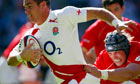 England Rugby Kits: England's Lawrence Dallaglio passes the ball during the match against Fiji