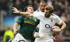 Tom Croft fends off the attentions of South Africa at Twickenham before injuring his shoulder. Photograph: Warren Little/Getty Images Photograph: Warren Little/Getty Images
