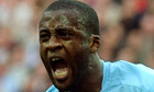 Yaya Touré, who epitomised City's bulldozer ethic, celebrates after scoring the second-half winner at Wembley. Photograph: Roger Parker/EPA Photograph: Roger Parker/EPA