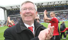 Sir Alex Ferguson celebrates Manchester United's draw at Blackburn Rovers and the club's 19th league title. Photograph: John Peters/Man Utd via Getty Images Photograph: John Peters/Man Utd via Getty Images
