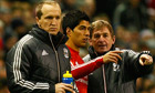 Luis Suárez, centre, with Kenny Dalglish to his right, made his Liverpool return from a nine-match suspension earlier this week. Photograph: Tim Hales/AP Photograph: Tim Hales/AP
