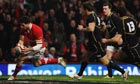 Alex Cuthbert breaks through the Scotland defence to touch down for Wales at the Millennium Stadium. Photograph: Michael Steele/Getty Images Photograph: Michael Steele/Getty Images