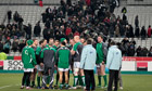 Ireland's players contemplate a blank evening after their match against France is called off. Photograph: Charles Platiau/Reuters Photograph: Charles Platiau/Reuters