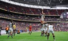 Harlequins' George Robson wins a lineout for his side during the Aviva Premiership match against Saracens at Wembley. Photograph: Tom Jenkins for the Observer Photograph: Tom Jenkins