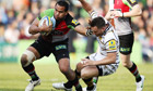 But it would be a travesty if such a club should drop out of the top flight for anything other than rugby reasons, not just because of their glittering history but also because of the promise of their near future. They spent virtually all of the first half making tackle after tackle, yet still managed a fine try by Christian Wade from a rare piece of possession to pull themselves back to 16-10 at the break.