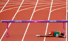 China's Liu Xiang sits up after falling while competing in the men's 110m hurdles heatsPhotograph: Olivier Morin/AFP/Getty ImagesZsofia Kovacs of Hungary sports a graze from a crash during the cycling leg of the Women's triathlonPhotograph: Ian McIlgorm/NOPPSebastian Bachmann of Germany has an injury tended to during the bronze medal match in the men's foil team fencing finalPhotograph: Chris McGrath/Getty ImagesEthiopia's Genzebe Dibaba leaves the track in a wheelchair after sustaining an injury at the end of the women's 1500m heatsPhotograph: Olivier Morin/AFP/Getty ImagesFrance's Ugo Legrand with his nose taped after being injured during the elimination round of the men's 73kg judo competitionPhotograph: Toru Hanai/ReutersBirhan Getahun of Ethiopia lies on the track after sustaining an injury during heat 2 of the men's 3000m steeplechase Photograph: David Gray/ReutersSouth Korea's Jeon Hee Sook has a hand injury tended to during the women's foil team fencing semi-finalPhotograph: Jonathan Brady/EPAMontenegro's Katarina Bulatovic screams following a back injury during a women's handball preliminary match against RussiaPhotograph: Vadim Ghirda/APQatar's Noor Hussain Al-Malki reacts after sustaining an injury while competing in the women's 100m heats Photograph: Adrian Dennis/AFP/Getty ImagesSouth Korea's SA Jae-hyouk grabs his arm after getting injured during the men's 77Kg group A weightlifting competitionPhotograph: Grigory Dukor/ReutersAlan Khugaev of Russia tapes up an injury to his forehead during his fight with Vladimer Gegeshidze of Georgia in the men's 84kg Greco-Roman wrestling semi final Photograph: Orestis Panagiotou/EPABritain's Kate Walsh falls after getting hit in the face by Japan's Nagisa Hayashi during their women's group A hockey matchPhotograph: Suzanne Plunkett/ReutersDanish cyclist Lasse Norman Hansen crashes during the men's omnium 15km scratch race Photograph: Odd Andersen/AFP/Getty ImagesElsabeth Black of Canada is injured after competing in the women's gymnastics vault final Photograph: Brian Snyder/ReutersAndre Ho of Canda gets medical treatment after a nose injury in the table tennis competitionPhotograph: Bernd Thissen/EPAJapan's Sayaka Sato lies in pain during the women's singles badminton match Photograph: Manan Vatsyayana/AFP/Getty ImagesPetra Cetkovska of Czech Republic is helped to her feet after receiving treatment for an injury during the women's singles tennis match Photograph: Clive Brunskill/Getty ImagesShaunae Miller of Bahamas cries after sustaining an injury during her women's 400m heat Photograph: Kai Pfaffenbach/Reuters