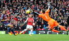 Queens Park Rangers 0-0 Norwich City The new £10m signing Christopher Samba was in the thick of the action on his Loftus Road debut, here he is clearing the ball away from Norwich's Wes Hoolahan Photograph: Andrew Couldridge/Action ImagesThe home side get a chance to open the scoring in the 56th minute after the referee points to the spot. Jamie Mackie had raced into the penalty area, though was heading away from goal when Mark Bunn raced off his line and ran into the forward. Taarabt's penalty was firm enough, but Bunn dived well to his left to push the ball to safetyPhotograph: Dominic Lipinski/PANewcastle United 3-2 Chelsea After an influx of 8 players from French Ligue 1 clubs, the Toon Army have taken a liking to all things Gallic. As well as fans turning up in breton sweaters and berets, the Strawberry pub outside St James' Park has been renamed 'La Fraise' . However it wasn't a Frenchman but an Argentinian who opened the scoring when Newcastle's Jonás Gutiérrez glanced a lovely header into the bottom cornerPhotograph: Paul Thomas/Getty ImagesJust after Newcastle took the lead things went from bad to worse for the visitors as their new signing Demba Ba got a Fabricio Coloccini boot to his face on his return to St James' ParkPhotograph: Scott Heppell/APThat must smart somewhatPhotograph: Ian Horrocks/Newcastle Utd via Getty ImagesStung by the goal, Chesea fight back and take the lead courtesy of a brace from Frank Lampard and Juan Mata, however they didn't count on Moussa Sissoko notching a couple himself to give the Toon a victory in an enthralling, entertaining and eventful contest Photograph: Laurence Griffiths/Getty ImagesWest Ham United 1-0 Swansea City It was another bleak day for the Swans' former goal machine Michu as this was the sixth consecutive game without a goal and when the opportunity presented itself midway through the second half, first he slashed wide from an angle and then headed over from Pablo Hernández's crossPhotograph: Jonathan Brady/PAHe was shown how things were done by the returning Andy Carroll who was the game's outstanding player, a threat in the air and nifty on the ground too. It was from the air where made his presence felt as in the 77th minute he rose highest in a packed area to thump home a header from Mark Noble's corner Photograph: Jed Leicester/Action ImagesArsenal 1-0 Stoke City After having the best of the first half, the home side came within a fingertip of opening the scoring just before half-time when Arsenal created their most cutting move of the match. Jack Wilshere pierced the visiting defence with a ball to Alex Oxlade-Chamberlain, whose attempt to curl the ball into the far corner from the left-hand side of the area was foiled by the Stoke keeper Asmir Begovic Photograph: Olly Greenwood/AFP/Getty ImagesWith 12 minutes to go, the deadlock is finally broken but it's via luck rather than skill. Begovic seemed to have Lukas Podolski's free kick covered until it deflected off Geoff Cameron and rolled into the net past the wrong-footed keeper. It was a scrappy win for Arsenal but the victory keeps up their fight for Champions League qualificationPhotograph: Michael Regan/Getty ImagesReading 2-1 Sunderland After Jimmy Kébé gave Reading the lead in the 7th minute, Craig Gardner equalised from the penalty spot after Pavel Pogrebnyak caught John O'Shea while defending a cornerPhotograph: Scott Heavey/Getty ImagesHowever with five minutes to go Kébé rose highest at the back stick to nod home a late winner. The victory means Reading have taken 14 points from their last seven games, which is in direct contrast to their form before Christmas where they lost six in a row Photograph: Scott Heavey/Getty ImagesEverton 3-3 Aston Villa With the visiting side only taking two points from seven games and Everton having only been beaten once at Goodison in 10 months, the smart money was on a home victory. With just over an hour gone the smart money started to seem a bit stupid as two goals from Christian Benteke and one from Gabriel Agbonlahor gave Villa a 3-1 leadPhotograph: Clive Brunskill/Getty ImagesHowever a brace from Marouane Fellaini, including a header deep in injury time, denied Paul Lambert's side a rare victoryPhotograph: Carl Recine/Action ImagesWigan Athletic 2-2 Southampton After Gary Caldwell headed the home side into the lead in the 25th minute they were on the back foot for most of the rest of the game as Southampton were a constant threat, so it was no surprise when Rickie Lambert levelled after 64 minutes. The Saints then thought they had won it as Morgan Schneiderlin finished five minutes from time Photograph: Alex Livesey/Getty ImagesBut the Saints hadn't reckoned on Wigan's Shaun Maloney prodding the ball home from a corner to salvage a pointPhotograph: Dave Thompson/PAFulham 0-1 Manchester UnitedThe early part of the match is a frenetic affair with both sides having chances to score, here Brede Hangeland almost gets his head to a cross before David De Gea plucks the ball from atop his head Photograph: Ian Kington/AFP/Getty ImagesJust before half-time the floodlights go out and the Craven Cottage pitch is plunged into darkness. The players eventually trudge off before coming back on for a few minutes before half-timePhotograph: Jamie McDonald/Getty ImagesUnited start the second half strongly but despite having the lions share of possession they fail to create many chances. With 11 minutes to go, however, Wayne Rooney curled the ball into the far corner as Manchester United opened up a 10-point lead in the Premier LeaguePhotograph: Tony O'Brien/Action Images