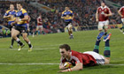 Any romantic notions about the boys from the bush causing some kind of upset swiftly evaporated, however, in the five one-sided minutes it took the Lions to score 19 unanswered points after a brief early spell of Country defiance. Tipuric had a big hand in the those scored by Alex Cuthbert and Conor Murray, before Stuart Hogg cruised through a yawning gap to score a worryingly easy third. The young Scot also converted four of his side's six first-half tries, hitting a post with another. For a goalkicker of little previous top-level experience, it was a fair return. Boss Hogg, indeed.