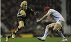 The home side's half-backs Danny Care and Evans were lighting fires all over the pitch to inspire some terrific running rugby but, for once, Evans was wayward with his kicking at goal, missing three chances to stretch the lead. Evans completely miscued a penalty attempt from the 10-metre line but he was unlucky when a conversion attempt from close to the touchline struck an upright.