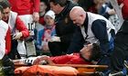 Manchester United's Robin van Persie leaves the Old Trafford pitch on a stretcher after suffering a last-minute injury against Olympiakos. Photograph: Peter Byrne/PA Photograph: Peter Byrne/PA