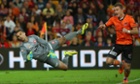 Wanderers fans seem a little bit fesity before kick-off. Photograph: Dan Peled/AAPThe Brisbane fans opt for the more gentle art of face painting. Photograph: Matt Roberts/Getty ImagesThomas Broich (right) was the A-League player of the season. Here he gets to know Jerome Polenz a little better. Photograph: Chris Hyde/Getty ImagesThe opening stages are hard fought. Here Ivan Franjic and Brendon Santalab battle for the ball. Photograph: Bradley Kanaris/Getty ImagesShinji Ono was making his final domestic appearance for the Wanderers. Photograph: Chris Hyde/Getty ImageMatthew Spiranovic gave the Wanderers the lead through a header. Photograph: Bradley Kanaris/Getty ImagesIvan Franjic looks at the jubilant Wanderers fans. Photograph: Dave Hunt/AAPBut Brisbane equalise with five minutes to go. Inevitably, it is the prolific Besart Berisha who scores the goal. Photograph: Robert Cianflone/Getty ImagesBesart Berisha seems quite excited by the whole thing. The match will go to extra-time. Photograph: Bradley Kanaris/Getty ImagesAnd it's Roar that step up in extra time. Henrique slams the ball into the roof of the net to seal Brisbane's third grand final victory. Photograph: Robert Cianflone/Getty ImagesBerisha is in tears as his coach, Mike Mulvey, celebrates in the foreground at full-time. Photograph: Robert Cianflone/Getty ImagesThe Roar celebrate their victoryPhotograph: Chris Hyde/Getty Images