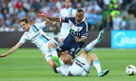 34 min: Victory’s Geria and City’s Garrucio collide mid-pitch; hard to say who was at fault, if anyone, but the ref finds in favour of City and Geria cops a yellow card.