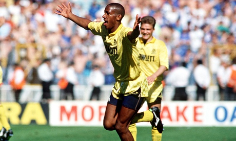 Dion Dublin celebrates his Wembley play-off winner in 1990, kickstarting Cambridge’s all-too-brief glory era. Photograph: Bob Thomas/Getty Images Photograph: Bob Thomas/Bob Thomas/Getty Images