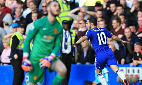 Van Gaal could be seen remonstrating with the fourth official, Craig Pawson, after the goal because he was convinced there had been a foul by John Terry in the buildup. It was rare to see the Dutchman in that finger-pointing pose but his anger would be more accurately directed at his players. Chris Smalling’s pass out of defence was the first problem, in keeping with a recurring theme when the centre-half is on the ball. Falcao had Terry closing in from behind and as soon as Chelsea’s captain came away with the ball the away team were vulnerable. Oscar’s backheel was measured perfectly to leave Hazard scampering into the penalty area and the Belgian drew De Gea out of his goal before slotting in his shot.