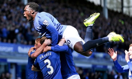 Everton celebrates John Stones goal. Photograph: JMP/Rex Shutterstock