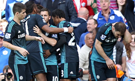 Chelsea's Branislav Ivanovic, right, is struck by a cigarette lighter while Chelsea celebrate their late winner at Loftus Road. Photograph: JMP/Rex Shutterstock Photograph: /JMP/Rex Shutterstock